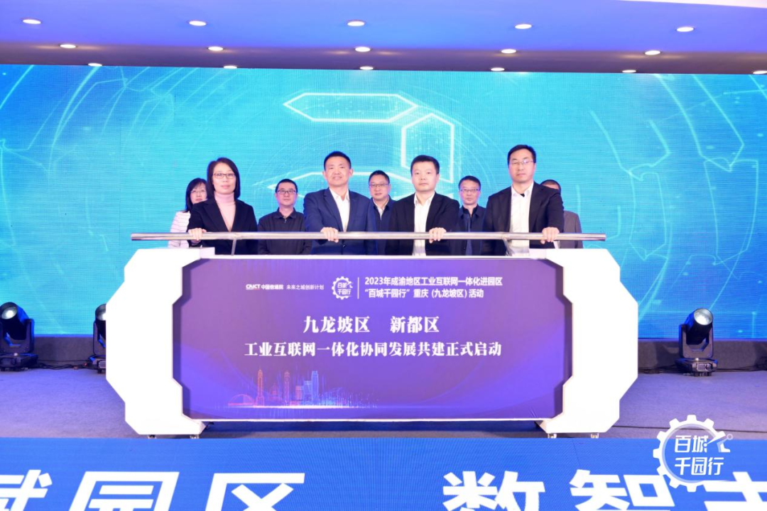 在重庆市经济和信息化委员会副主任杨正华、四川省经济和信息化厅二级巡视员苏平、重庆市通信管理局副局长贺宏亮、四川省通信管理局副局长李林、中国信通院党委副书记王晓丽的见证下,成都市新都区委副书记、区长魏柯,成都市新都区政府副区长贺凯丰,重庆市九龙坡区委副书记、区政府区长李顺,重庆市九龙坡区政府副区长廖英共同启动了九龙坡区与新都区工业互联网一体化协同发展共建活动。重庆市九龙坡区与成都市新都区将共同推动在工业互联网领域的区域合作,携手共建成渝地区双城经济圈协同发展示范区。