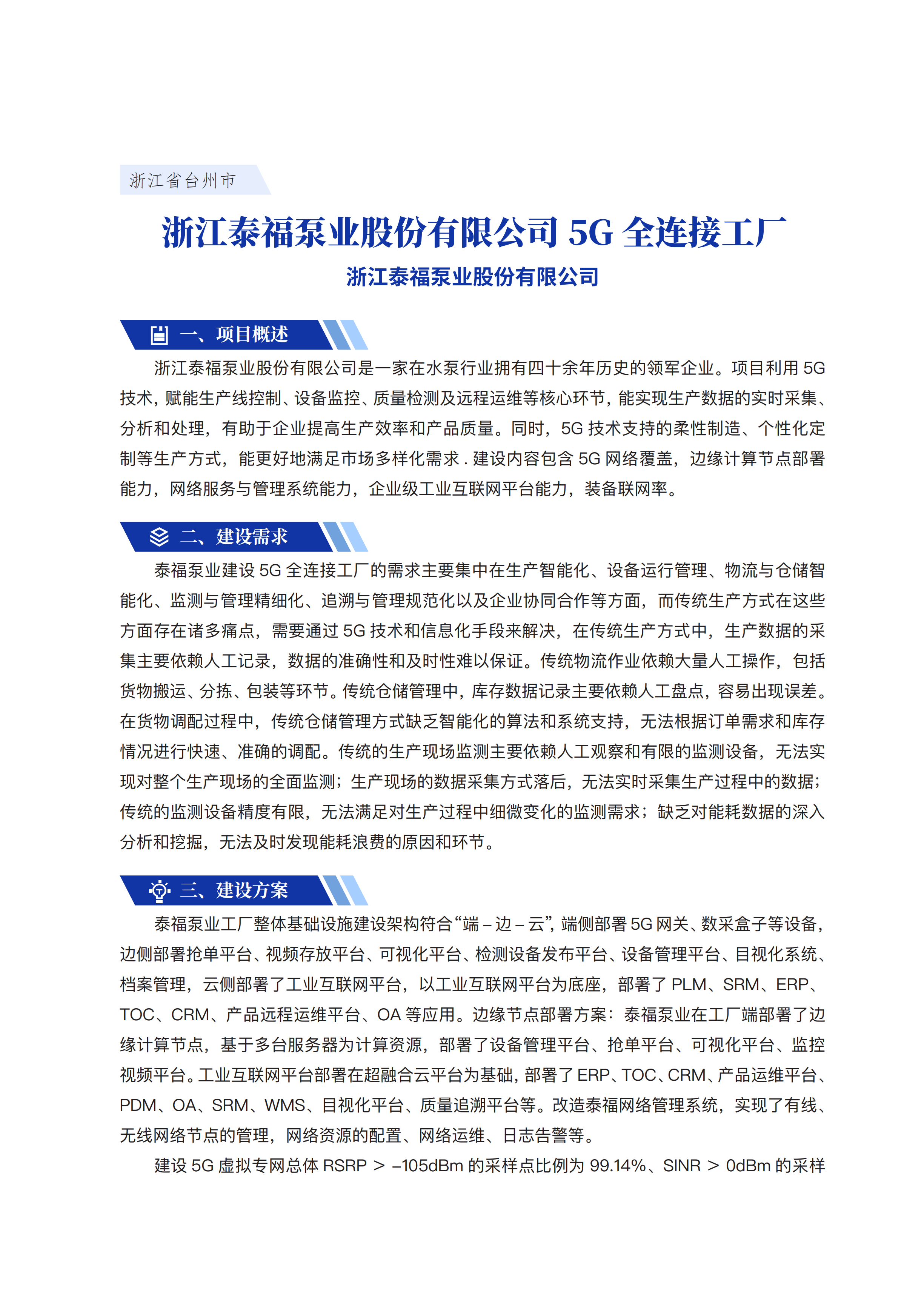 浙江泰福泵业股份有限公司5G全连接工厂
