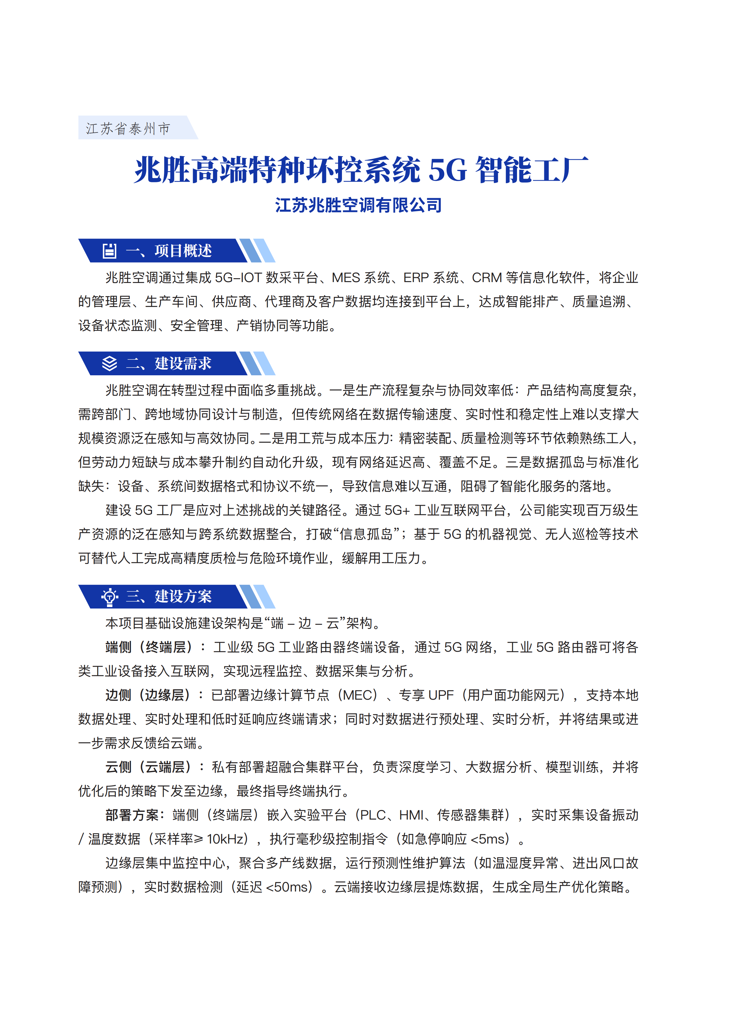 兆胜高端特种环控系统5G智能工厂