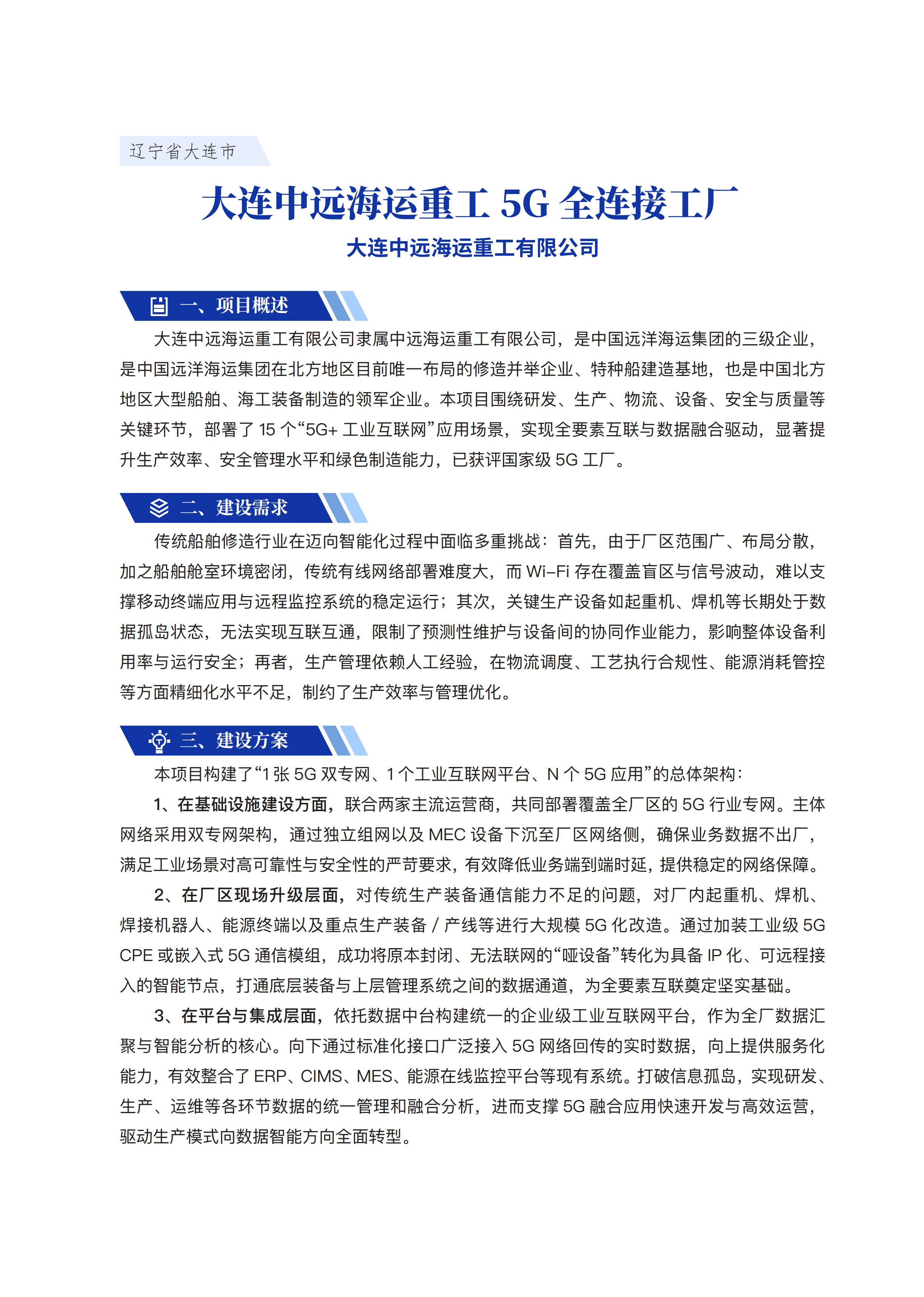 大连中远海运重工5G全连接工厂