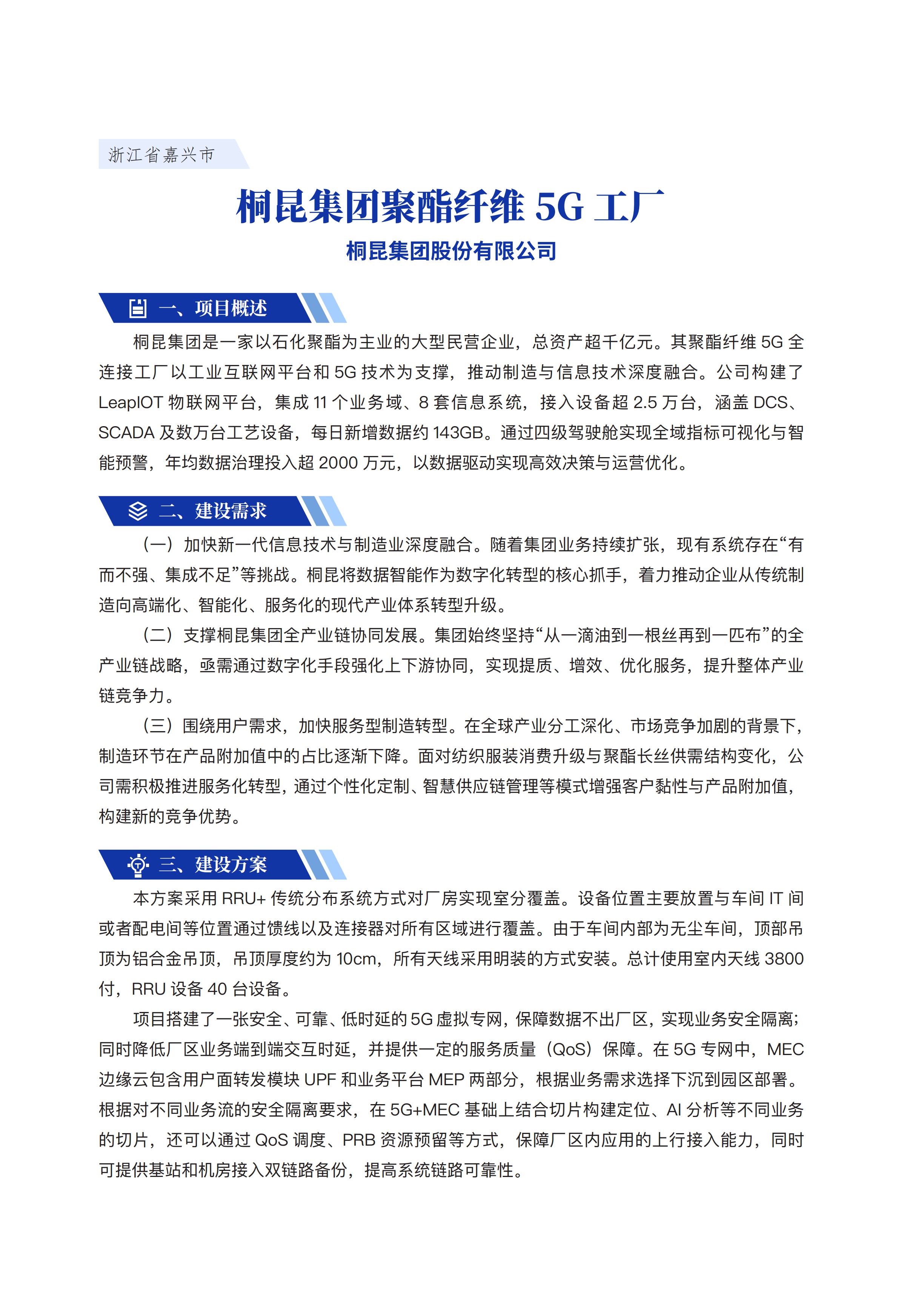 桐昆集团聚酯纤维5G工厂